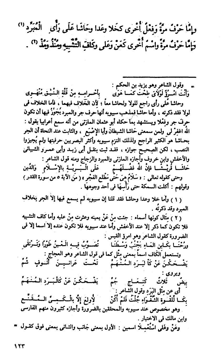 وإما حرف مرة وفعل أخرى كخلا وعدا وحاشا على رأي المبرد.