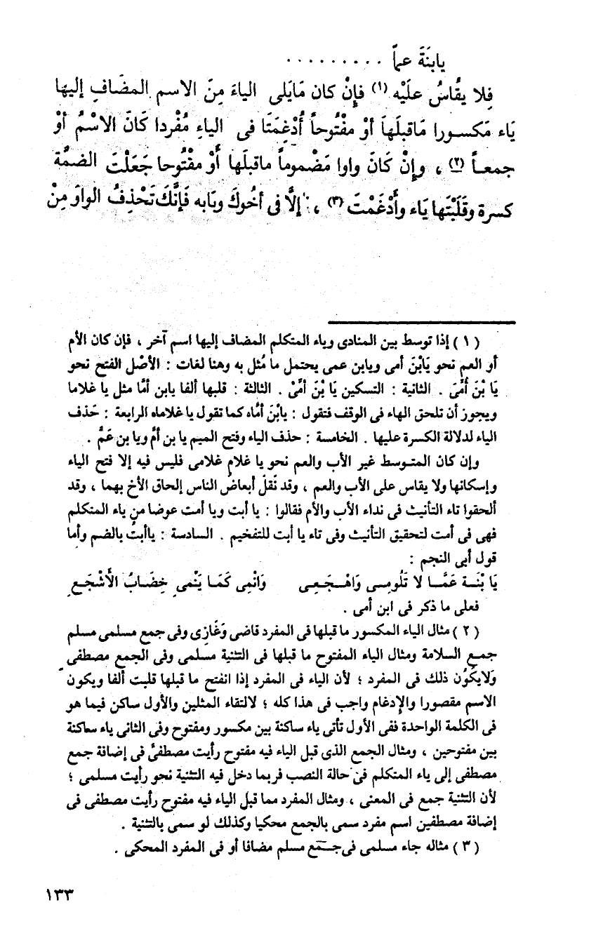 فلا يقاس عليه، فإن كان ما يلي الياء من الاسم المضاف إليها ياء مكسورا ما قبلها أو مفتوحا أدغمتا في الياء مفردا كان الاسم أو جمعا، وإن كان واوا مضموما ما قبلها أو مفتوحا جعلت الضمة كسرة وقلبتها ياء وأدغمت، إلا في أخوك وبابه فإنك تحذف الواو من