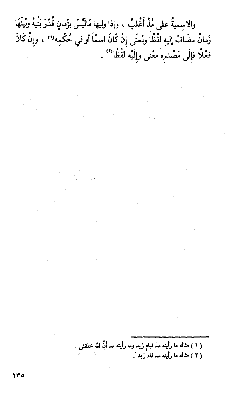 والاسمية على مذ أغلب، وإذا وليها ما ليس بزمان قدر بينه وبينها زمان مضاف إليه لفظا ومعنى إن كان اسما أو في حكمه، وإن كان فعلا فإلى مصدره معنى وإليه لفظا.