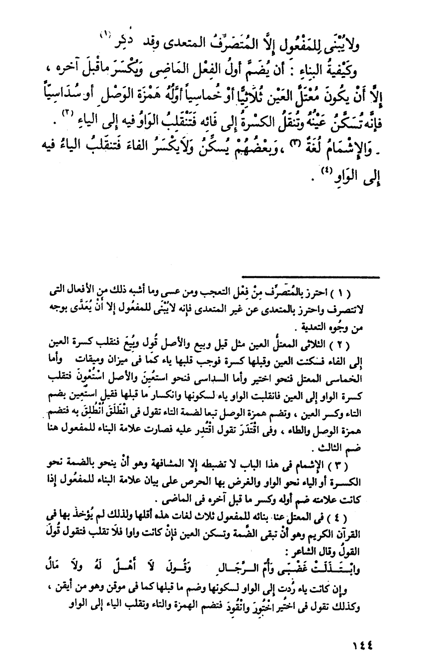 ولا يبنى للمفعول إلا المتصرف المتعدي وقد ذكر.