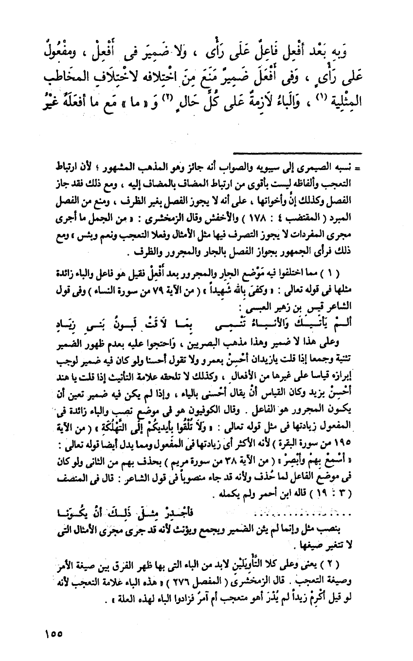 وبه بعد أفعل فاعلٌ على رأي، ولا ضمير في أفعل، ومفعول على رأي، وفي أفعل ضمير منع من اختلافه لاختلاف المخاطب المثلية، والباء لازمة على كل حال، وما مع ما أفعله غيرُ