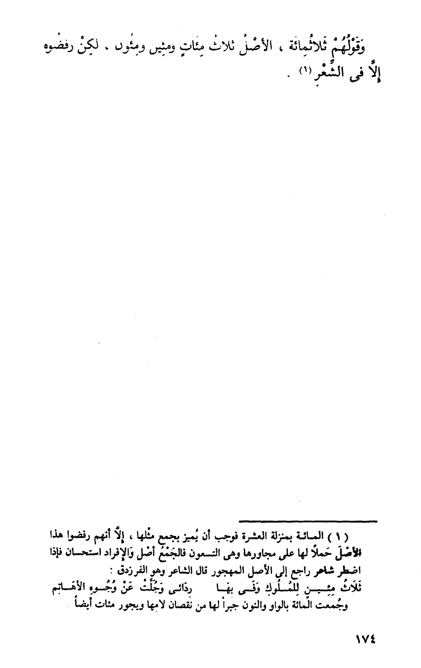 وقولهم: ثلاثمائة، الأصل ثلاث مئات ومئين ومئون، لكن رفضوه إلا في الشعر.