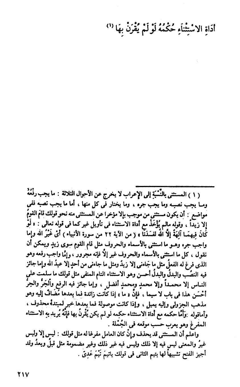 أداة الاستثناء حكمه لو لم يقرن بها.