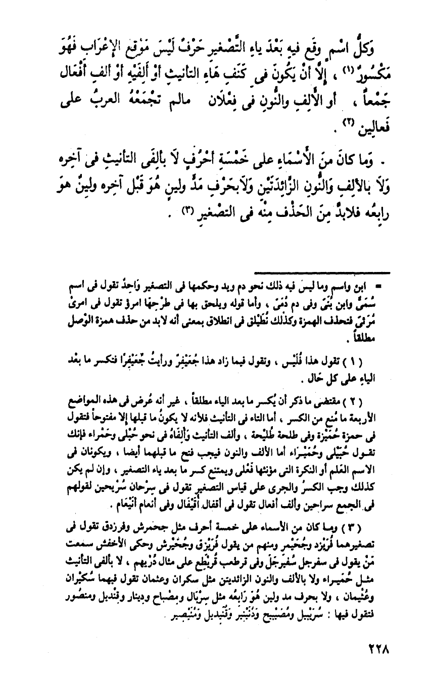 وكل اسم وقع فيه بعد ياء التصغير حرف ليس موقع الإعراب فهو مكسور، إلا أن يكون في كنف هاء التأنيث أو ألفيه أو ألف أفعال جمعا، أو الألف والنون في فِعْلان، ما لم تجمعه العرب على فعالين.