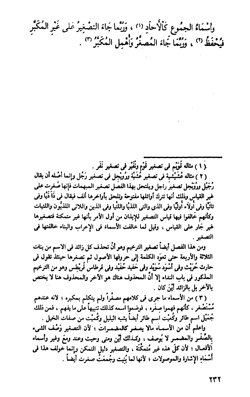 وأسماء الجموع كالآحاد، وربما جاء التصغير على غير المكبر فيحفظ، وربما جاء المصغر وأهمل المكبر.