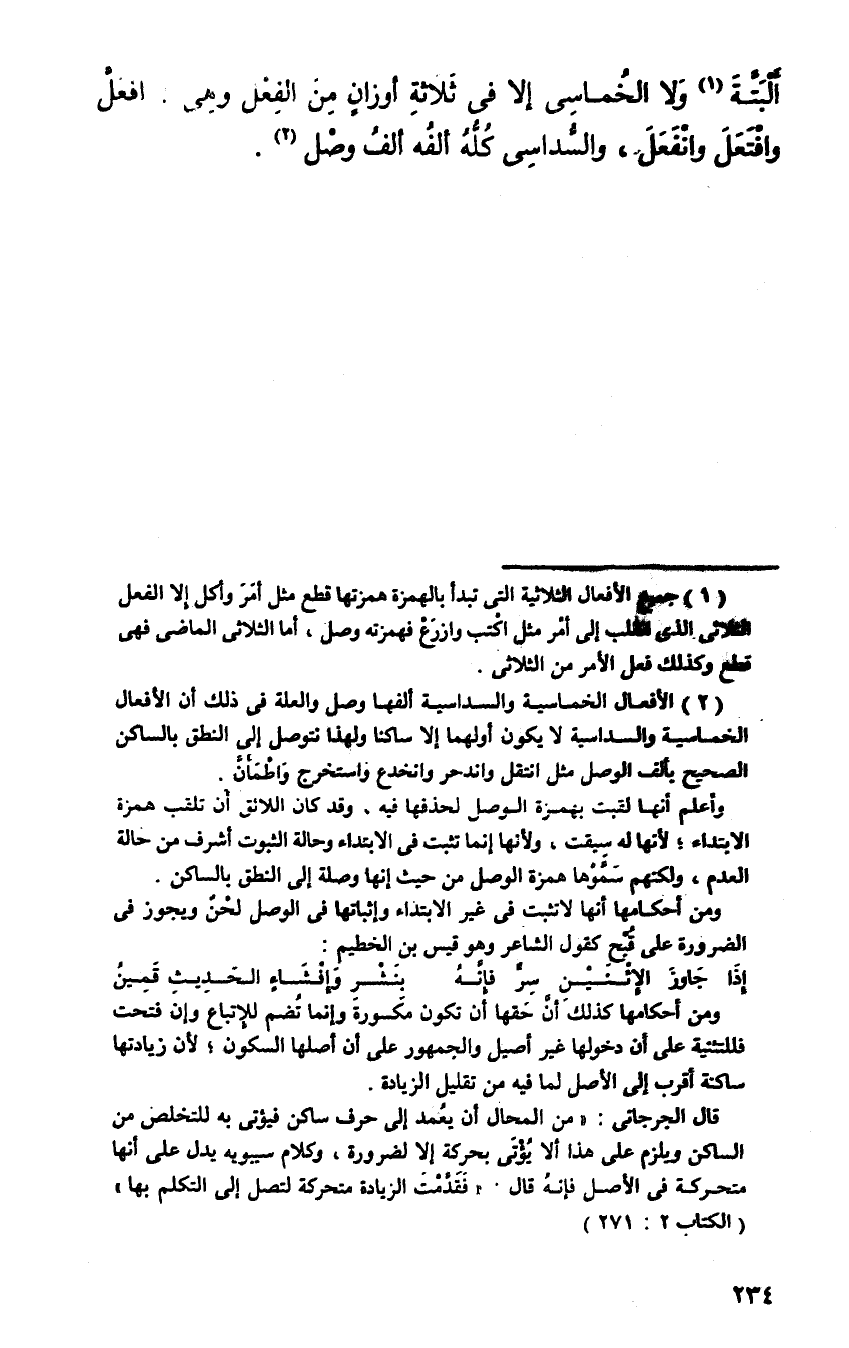 البتة، ولا الخماسي إلا في ثلاثة أوزان من الفعل وهي: افعلَّ وافتعل وانفعل، والسداسي كله ألف ألف وصل.