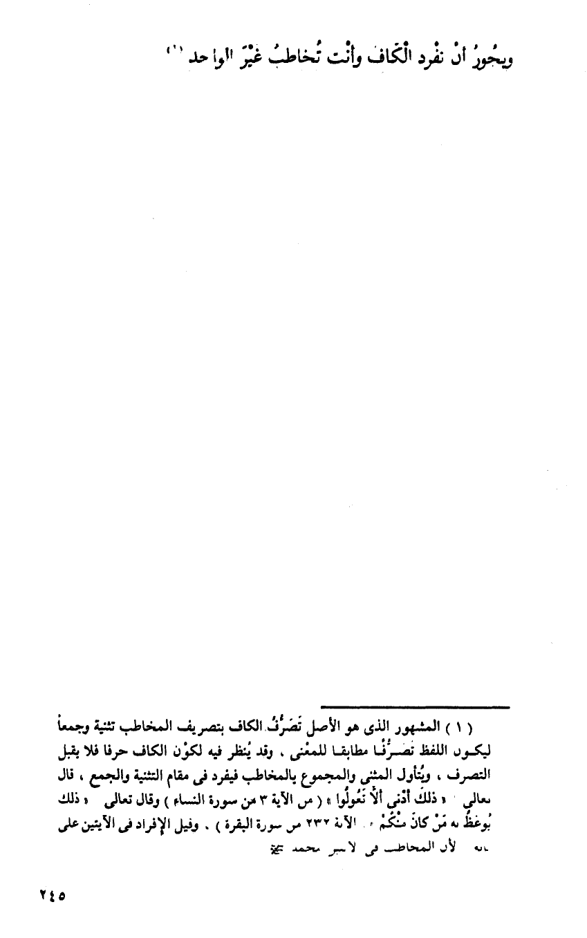 ويجوز أن تفرد الكاف وأنت تخاطب غير الواحد.