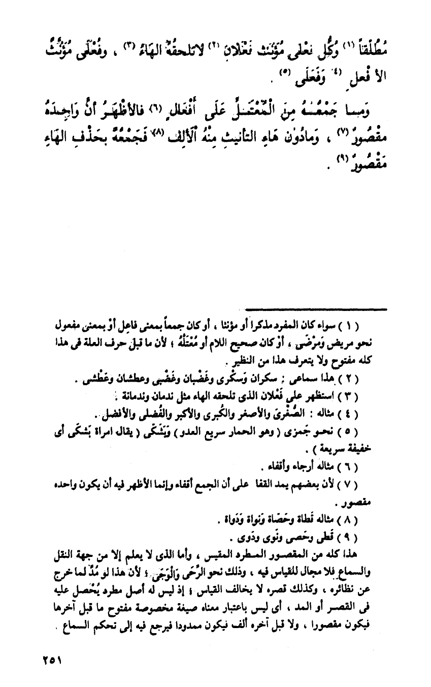 وما جمعه من المعتل على أفعال فالأظهر أن واحده مقصور، وما دون هاء التأنيث منه الألف فجمعه بحذف الهاء مقصور.