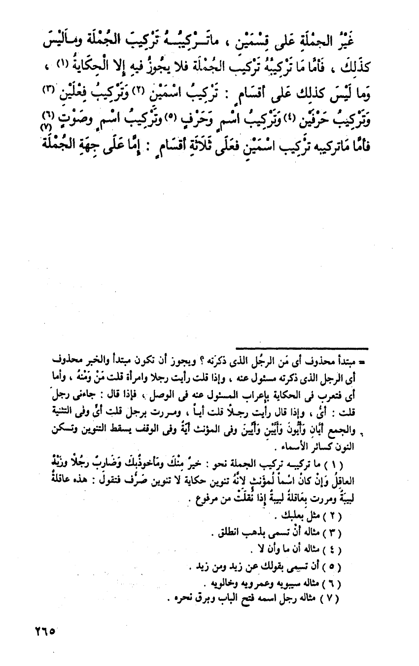 غير الجملة على قسمين، ما تركيبه تركيب الجملة وما ليس كذلك، فأما ما تركيبه تركيب الجملة فلا يجوز فيه إلا الحكاية، وما ليس كذلك على أقسام: تركيب اسمين وتركيب فعلين وتركيب حرفين وتركيب اسم وحرف وتركيب اسم وصوت، فأما ما تركيبه تركيب اسمين فعلى ثلاثة أقسام: إما على جهة الجملة