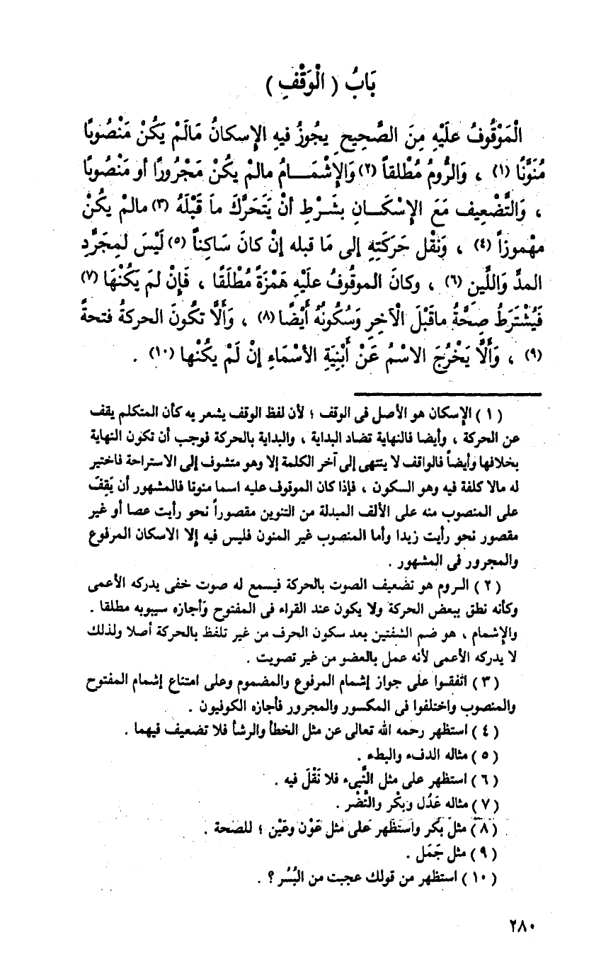 الموقوف عليه من الصحيح يجوز فيه الإسكان ما لم يكن منصوبا منونا، والروم مطلقا والإشمام ما لم يكن مجرورا أو منصوبا، والتضعيف مع الإسكان بشرط أن يتحرك ما قبله ما لم يكن مهموزا، ونقل حركته إلى ما قبله إن كان ساكنا ليس لمجرد المد واللين، وكان الموقوف عليه همزة مطلقا، فإن لم يكنها فيشترط صحة ما قبل الآخر وسكونه أيضا، وألا تكون الحركة فتحة، وألا يخرج الاسم عن أبنية الأسماء إن لم يكنها.