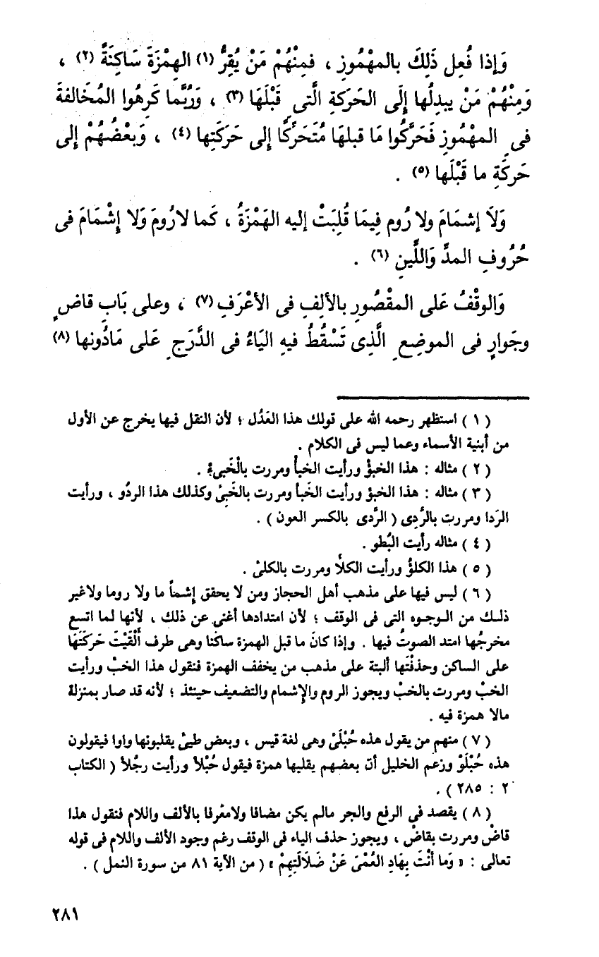 وإذا فعل ذلك بالمهموز، فمنهم من يقر الهمزة ساكنة، ومنهم من يبدلها إلى الحركة التي قبلها، وربما كرهوا المخالفة في المهموز فحركوا ما قبلها متحركا إلى حركتها، وبعضهم إلى حركة ما قبلها.