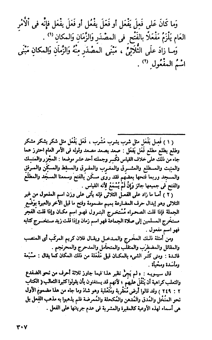 وما كان على فعِل يفعَل أو فعَل يفعُل أو فعَل يفعَل فإنه في الأمر العام يلزم مفعَلا بالفتح في المصدر والزمان والمكان.