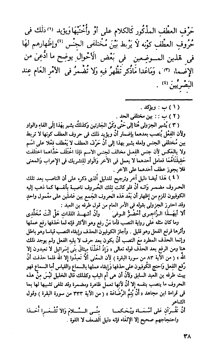 حرف العطف المذكور كالكلام على أو وأختيها ويؤيد ذلك في حروف العطف كونه لا يربط بين مختلفي الجنس وإظهارهم لها في هذين الموضعين في بعض الأحوال يوضح ما ادعي من الإضمار، وما عدا ما ذكر تظهر فيه ولا تضمر في الأمر العام عند البصريين.
