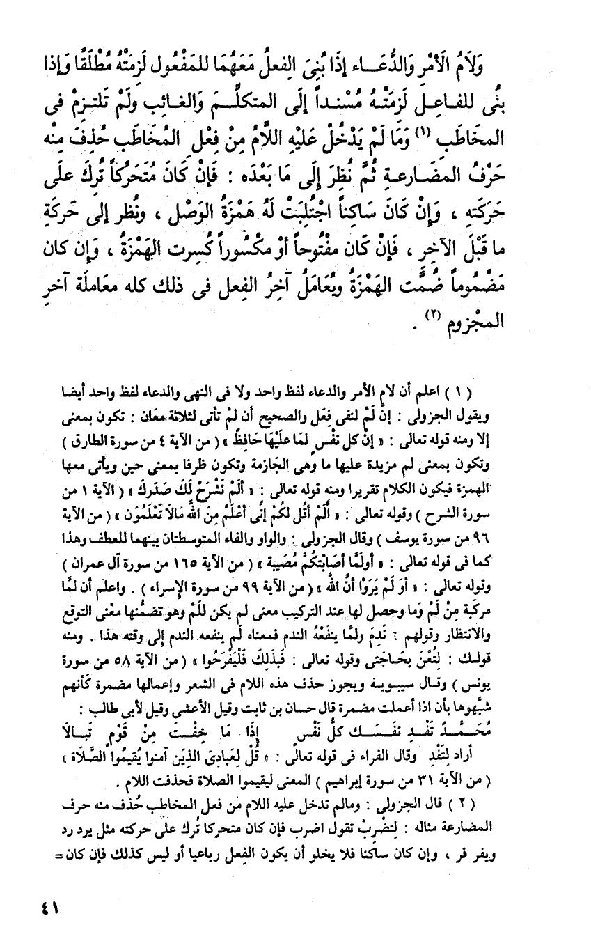 ولام الأمر والدعاء إذا بني الفعل معهما للمفعول لزمته مطلقا وإذا بني للفاعل لزمته مسندا إلى المتكلم والغائب ولم تلتزم في المخاطب وما لم يدخل عليه اللام من فعل المخاطب حذف منه حرف المضارعة ثم نظر إلى ما بعده: فإن كان متحركا ترك على حركته، وإن كان ساكنا اجتلبت له همزة الوصل، ونظر إلى حركة ما قبل الآخر، فإن كان مفتوحا أو مكسورا كسرت الهمزة، وإن كان مضموما ضمت الهمزة ويعامل آخر الفعل في ذلك كله معاملة آخر المجزوم.
