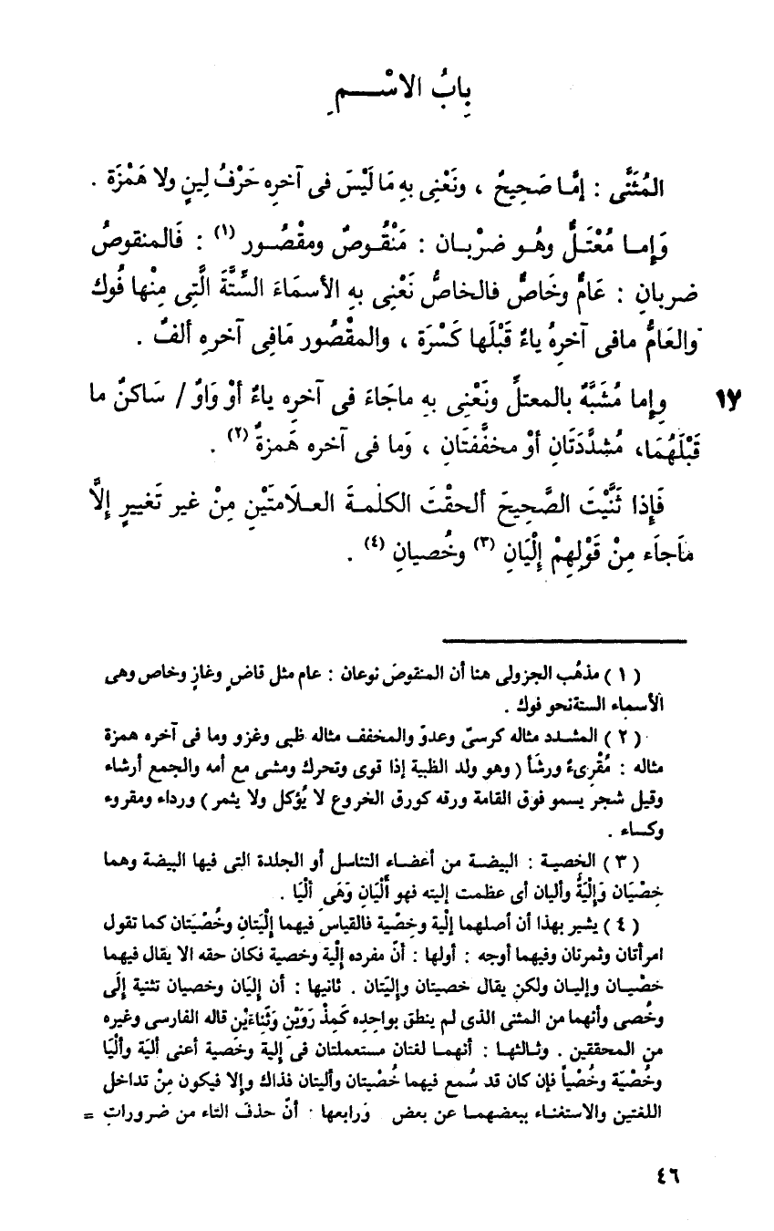 المثنى: إما صحيح ونعني به ما ليس في آخره حرف لين ولا همزة.