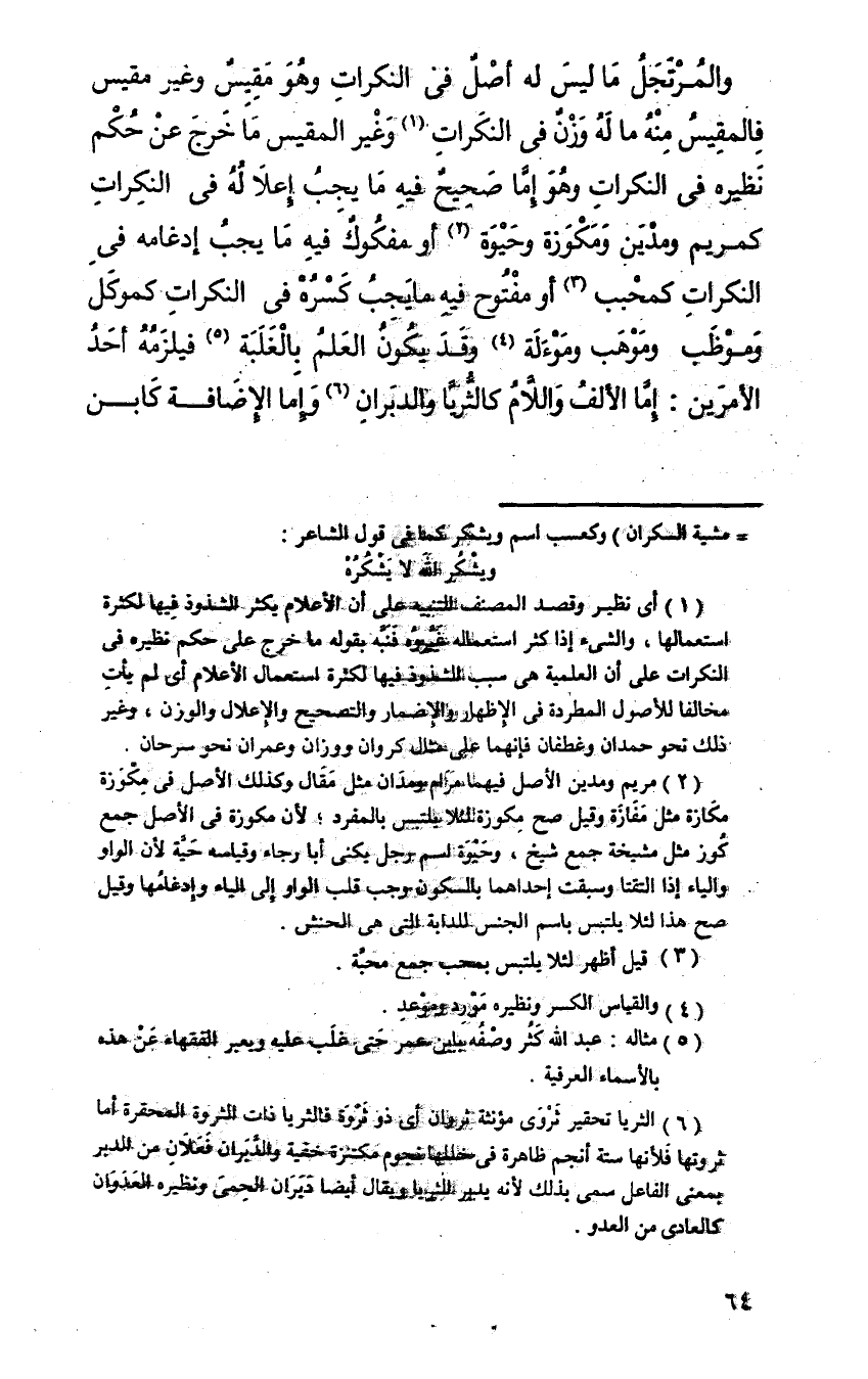 والمرتجل ما ليس له أصل في النكرات وهو مقيس وغير مقيس فالمقيس منه ما له وزن في النكرات وغير المقيس ما خرج عن حكم نظيره في النكرات وهو إما صحيح فيه ما يجب إعلاله في النكرات كمريم ومدين ومكوزة وحيوة، أو مفكوك فيه ما يجب إدغامه في النكرات كمحبب أو مفتوح فيه ما يجب كسره في النكرات كموكل وموظب وموهب وموءلة وقد يكون العلم بالغلبة فيلزمه أحد الأمرين: إما الألف واللام كالثريا والدبران وإما الإضافة كابن