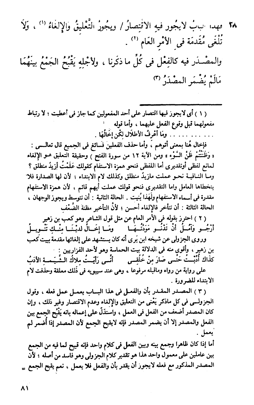 فهذا الباب لا يجوز فيه الاقتصار ويجوز التعليق والإلغاء، ولا تلغى مقدمة في الأمر العام.