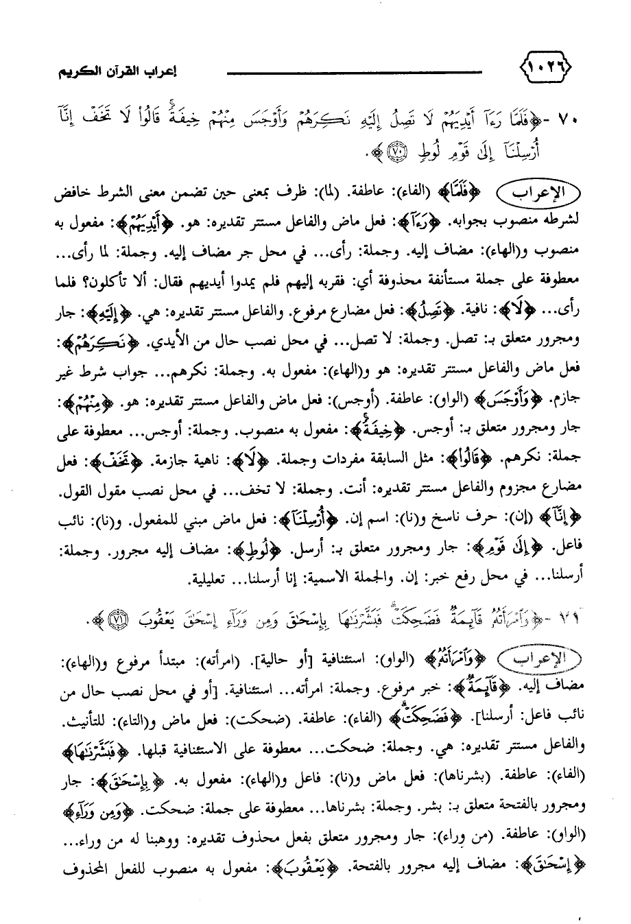 معطوفة على جملة مستأنفة محذوفة أي: فقربه إليهم فلم يمدوا أيديهم فقال: ألا تأكلون؟ فلما رأى ... {لا}: نافية. {تَصِلُ}: فعل مضارع مرفوع. والفاعل مستتر تقديره: هي. {إِلَيْهِ}: جار ومجرور متعلق ب: تصل. وجملة: لا تصل ... في محل نصب حال من الأيدي. {نَكِرَهُمْ}:
