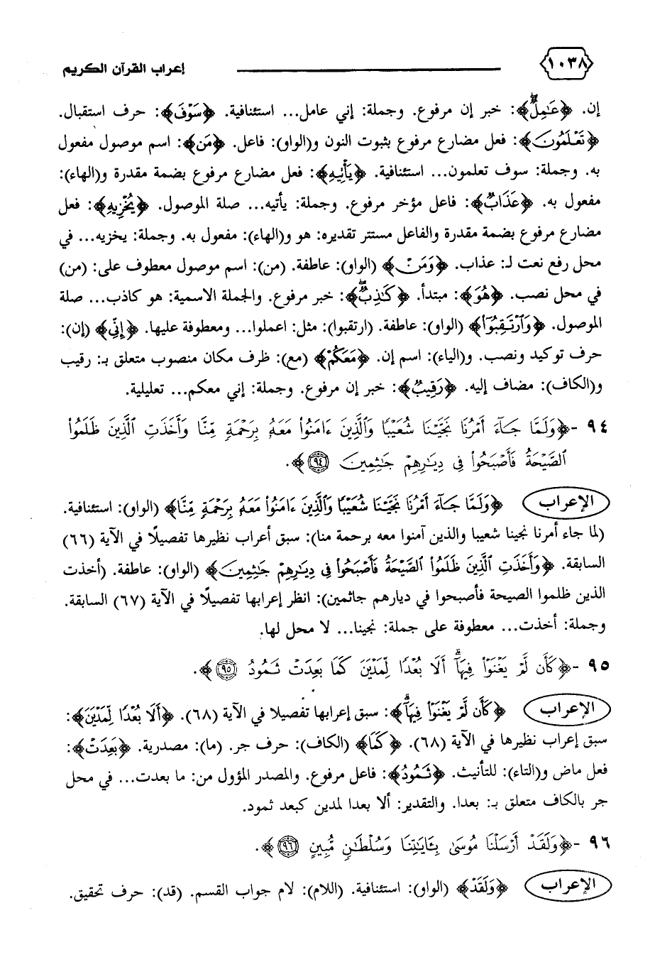 الإعراب {وَلَمّا جاءَ أَمْرُنا نَجَّيْنا شُعَيْباً وَالَّذِينَ آمَنُوا مَعَهُ بِرَحْمَةٍ مِنّا} (الواو): استئنافية.