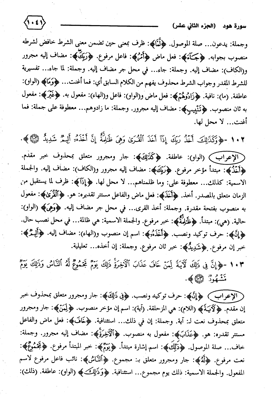 {وَكَذلِكَ أَخْذُ رَبِّكَ إِذا أَخَذَ الْقُرى وَهِيَ ظالِمَةٌ إِنَّ أَخْذَهُ أَلِيمٌ شَدِيدٌ (١٠٢)}