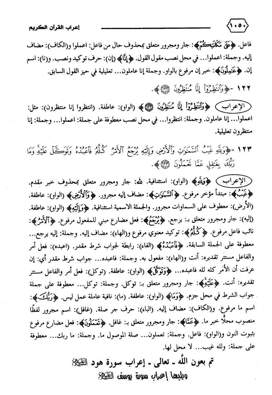 تم بعون الله-تعالى-إعراب سورة هود عليه السّلام ويليها إعراب سورة يوسف عليه السّلام