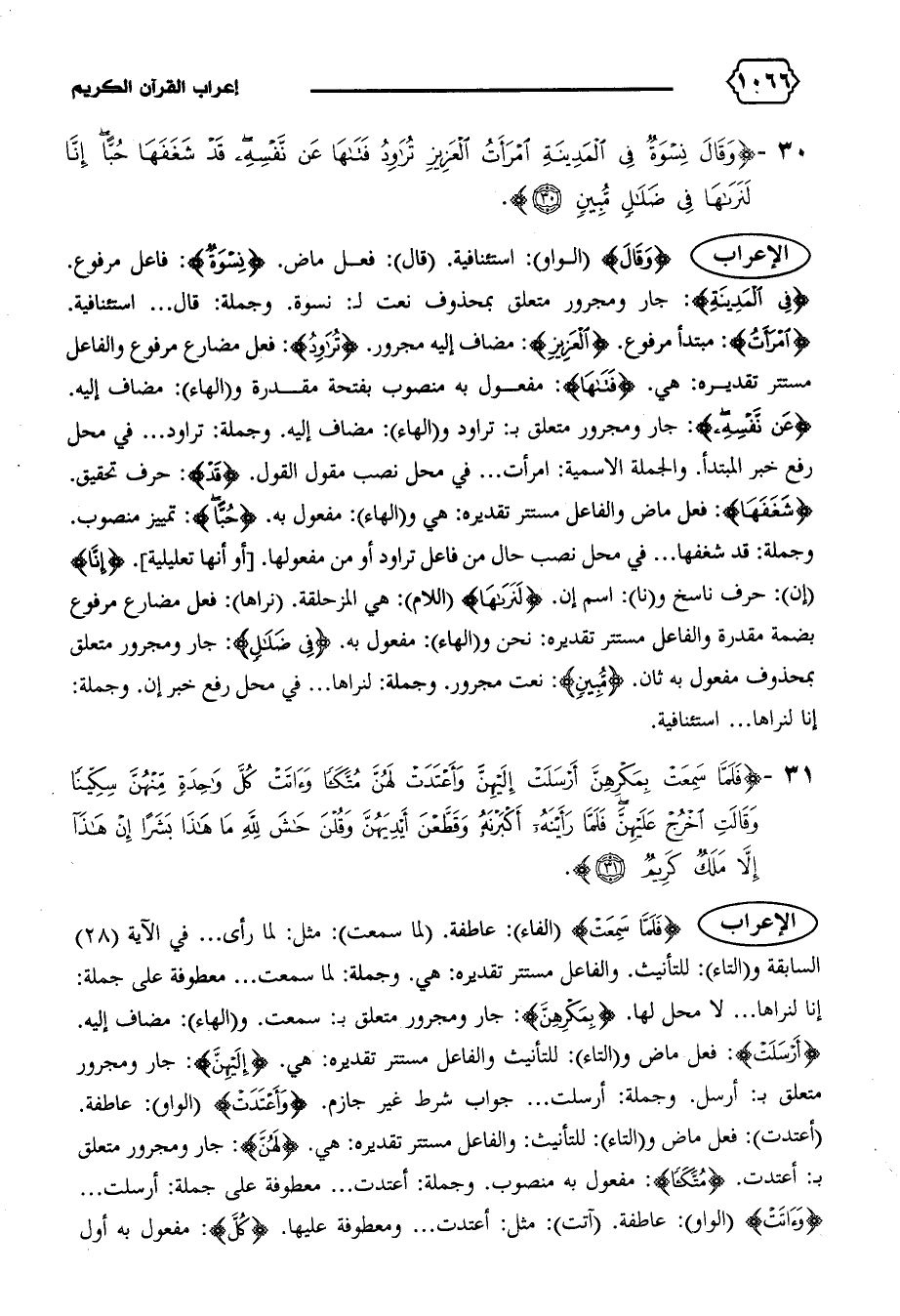 {وَقالَ نِسْوَةٌ فِي الْمَدِينَةِ اِمْرَأَتُ الْعَزِيزِ تُراوِدُ فَتاها عَنْ نَفْسِهِ قَدْ شَغَفَها حُبًّا إِنّا لَنَراها فِي ضَلالٍ مُبِينٍ (٣٠)}