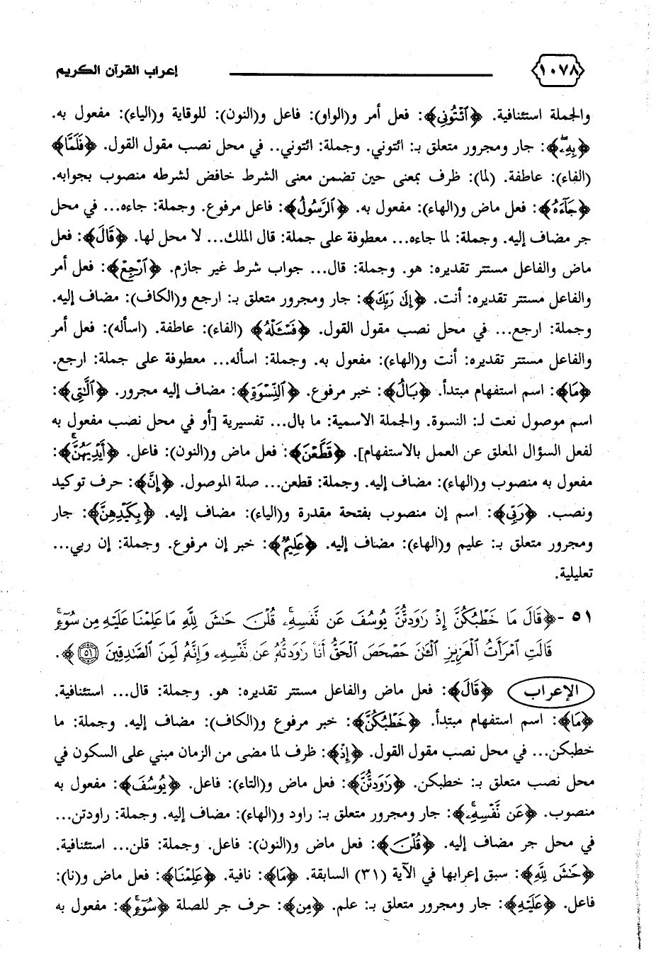 مفعول به منصوب و (الهاء): مضاف إليه. وجملة: قطعن ... صلة الموصول. {إِنَّ}: حرف توكيد ونصب. {رَبِّي}: اسم إن منصوب بفتحة مقدرة و (الياء): مضاف إليه. {بِكَيْدِهِنَّ}: جار ومجرور متعلق ب: عليم و (الهاء): مضاف إليه. {عَلِيمٌ}: خبر إن مرفوع. وجملة: إن ربي