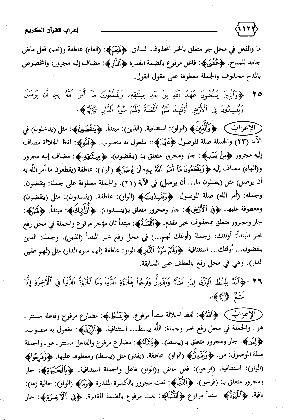 الإعراب {وَالَّذِينَ} (الواو): استئنافية. (الذين): مبتدأ. {يَنْقُضُونَ}: مثل (يدخلون) في الآية (٢٣) والجملة صلة الموصول {عَهْدَ}: مفعول به منصوب. {اللهِ}: لفظ الجلالة مضاف إليه مجرور {مِنْ بَعْدِ}: جار ومجرور متعلق ب: (ينقضون). {مِيثاقِهِ}: مضاف إليه مجرور و (الهاء) مضاف إليه {وَيَقْطَعُونَ ما أَمَرَ اللهُ بِهِ أَنْ يُوصَلَ} (الواو): عاطفة (يقطعون ما أمر الله به أن يوصل) مثل (يصلون ما ... أن يوصل) في الآية (٢١).والجملة معطوفة على جملة: ينقضون.