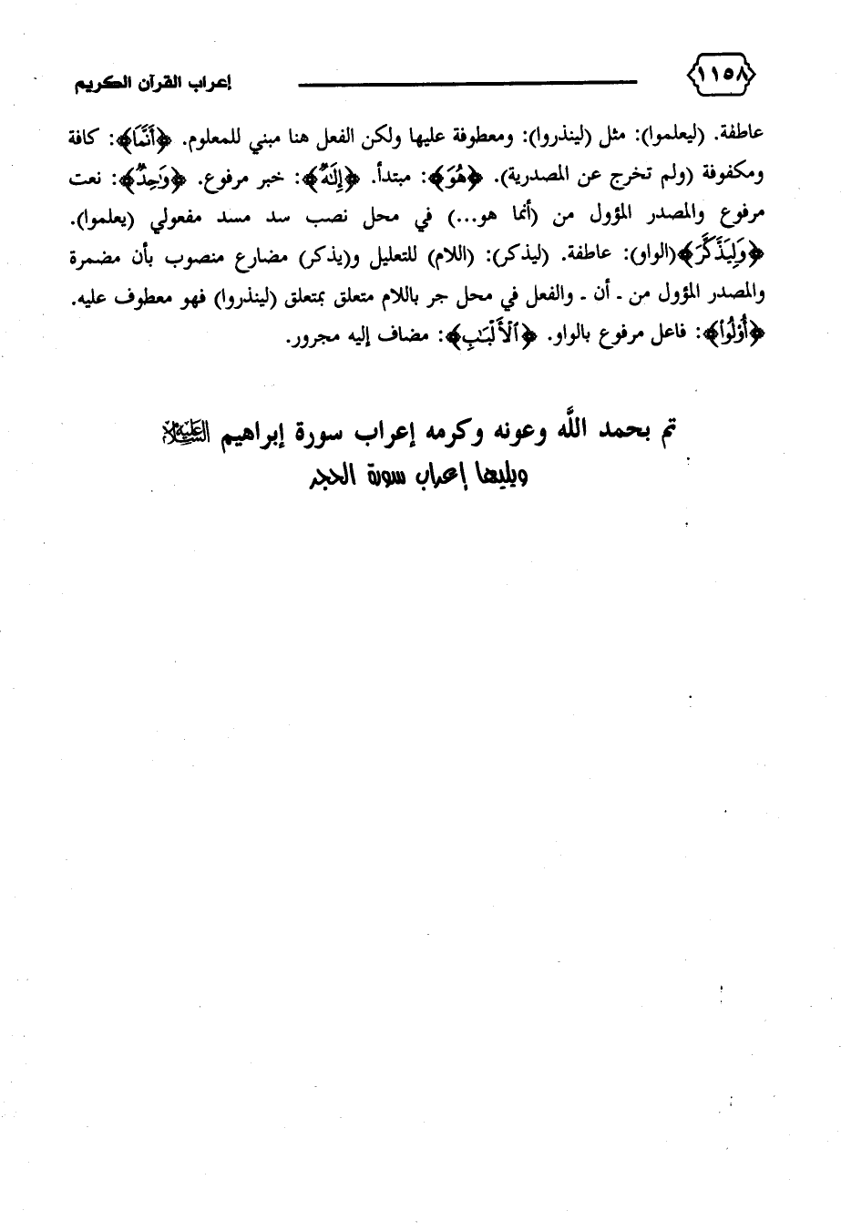 تم بحمد الله وعونه وكرمه إعراب سورة إبراهيم عليه السّلام ويليها إعراب سورة الحجر