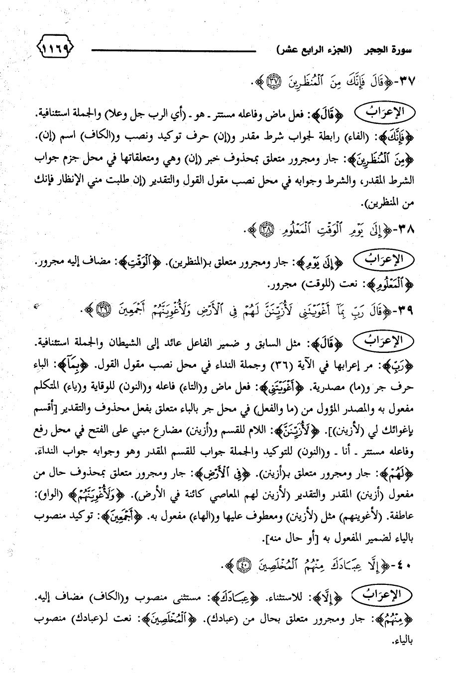 عاطفة. (لأغوينهم) مثل (لأزينن) ومعطوف عليها و (الهاء) مفعول به. {أَجْمَعِينَ}: توكيد منصوب بالياء لضمير المفعول به [أو حال منه].