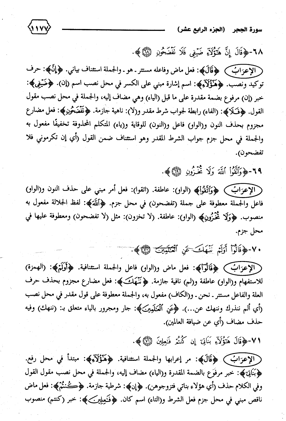 الإعراب {وَاتَّقُوا} (الواو): عاطفة. (اتقوا): فعل أمر مبني على حذف النون و (الواو) فاعل والجملة معطوفة على جملة (تفضحون) في محل جزم. {اللهَ}: لفظ الجلالة مفعول به منصوب. {وَلا تُخْزُونِ} (الواو): عاطفة. (لا تخزون): مثل (لا تفضحون) ومعطوفة عليها في محل جزم.