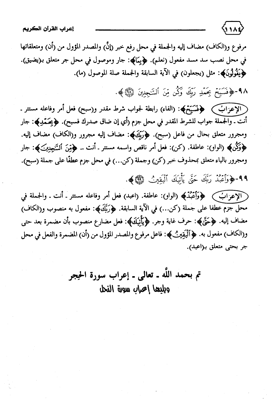 تم بحمد الله-تعالى-إعراب سورة الحجر ويليها إعراب سورة النحل