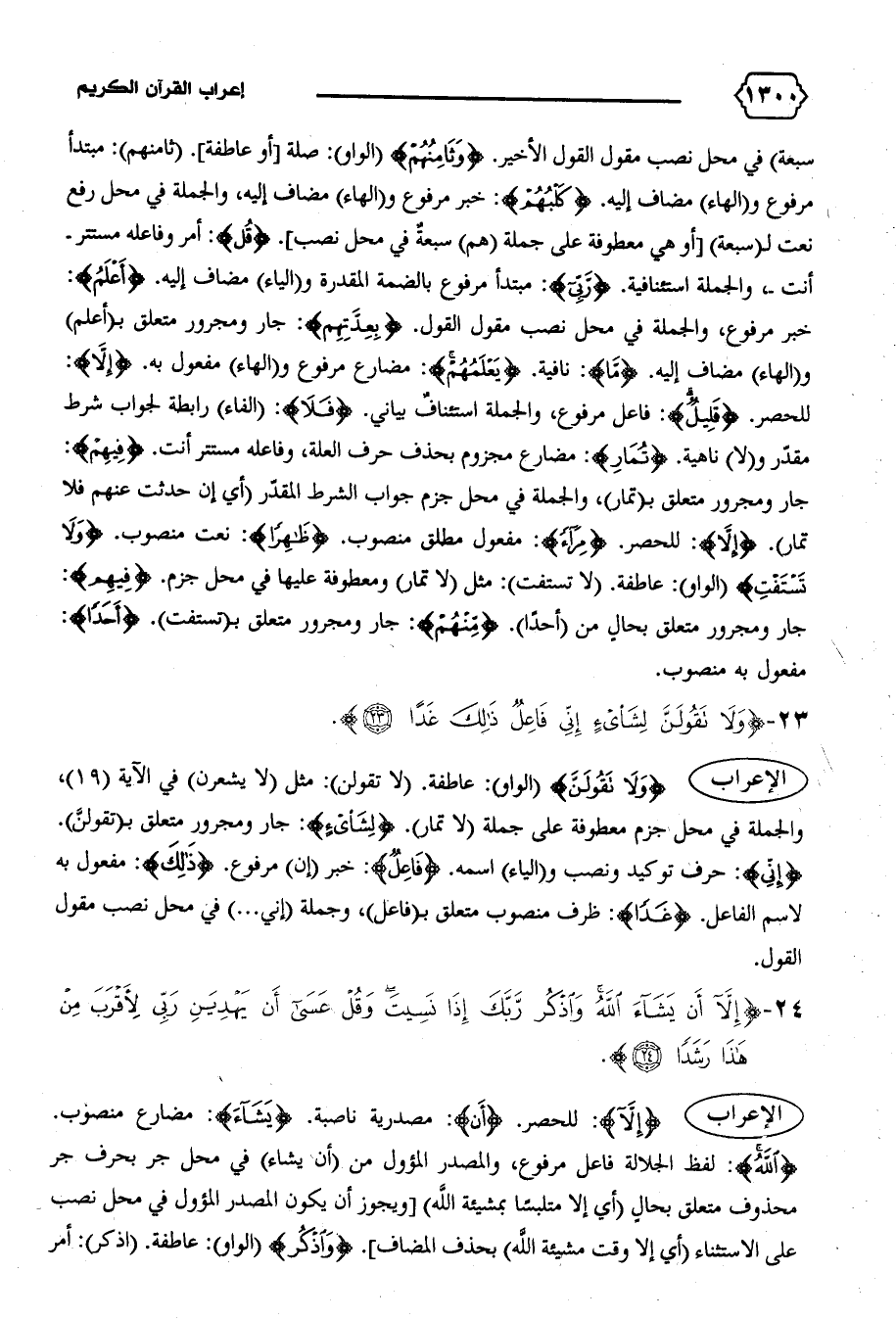 الإعراب {وَلا تَقُولَنَّ} (الواو): عاطفة. (لا تقولن): مثل (لا يشعرن) في الآية (١٩)، والجملة في محل جزم معطوفة على جملة (لا تمار). {لِشَيْءٍ}: جار ومجرور متعلق ب (تقولنّ).