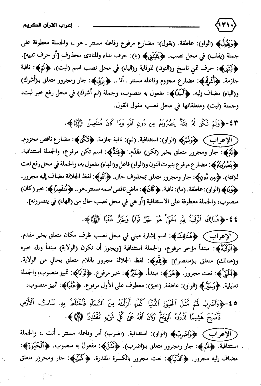 {وَيَقُولُ} (الواو): عاطفة. (يقول): مضارع مرفوع وفاعله مستتر-هو-، والجملة معطوفة على جملة (يقلب) في محل نصب. {يا لَيْتَنِي} (يا): حرف نداء والمنادى محذوف [أو حرف تنبيه].