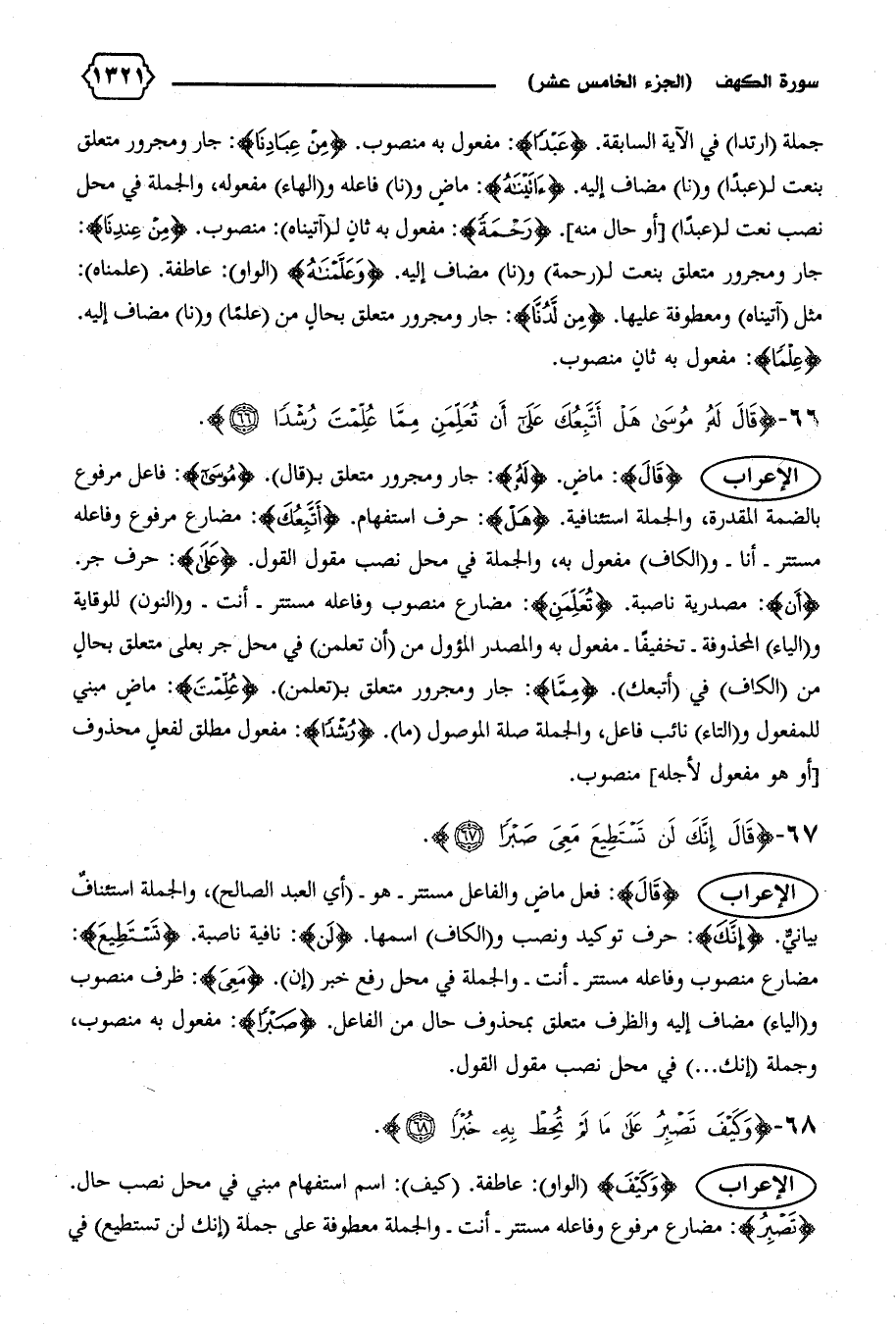 الإعراب {قالَ}: فعل ماض والفاعل مستتر-هو- (أي العبد الصالح)، والجملة استئناف بيانيّ. {إِنَّكَ}: حرف توكيد ونصب و (الكاف) اسمها. {لَنْ}: نافية ناصبة. {تَسْتَطِيعَ}: