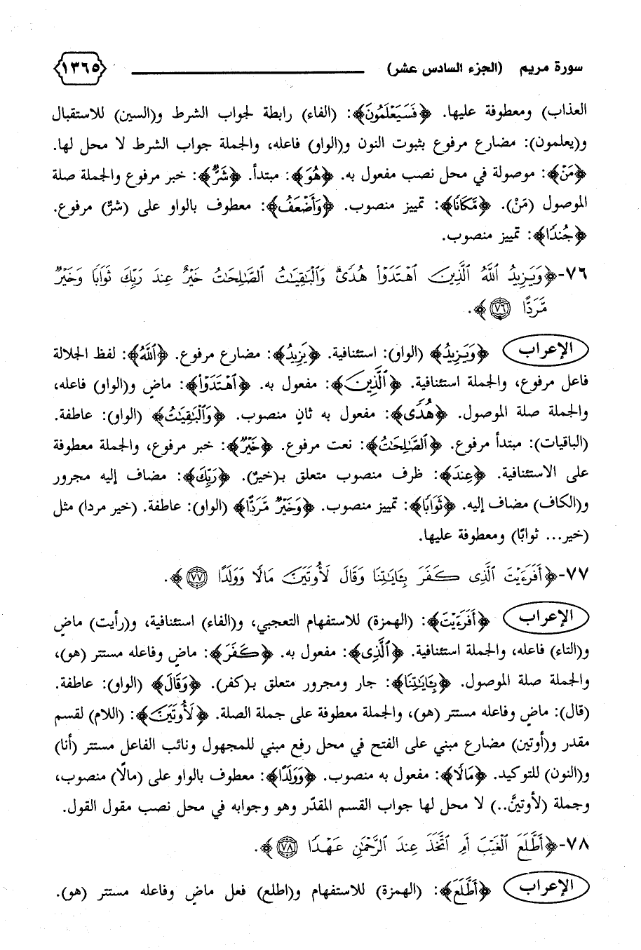 الإعراب {وَيَزِيدُ} (الواو): استئنافية. {يَزِيدُ}: مضارع مرفوع. {اللهُ}: لفظ الجلالة فاعل مرفوع، والجملة استئنافية. {الَّذِينَ}: مفعول به. {اِهْتَدَوْا}: ماض و (الواو) فاعله، والجملة صلة الموصول. {هُدىً}: مفعول به ثان منصوب. {وَالْباقِياتُ} (الواو): عاطفة.