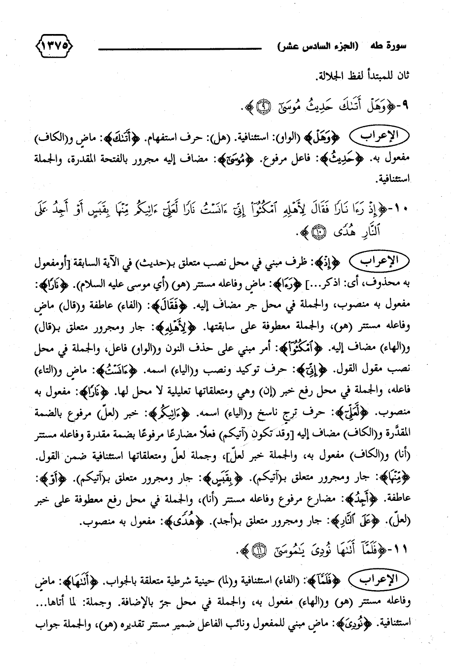الإعراب {وَهَلْ} (الواو): استئنافية. (هل): حرف استفهام. {أَتاكَ}: ماض و (الكاف) مفعول به. {حَدِيثُ}: فاعل مرفوع. {مُوسى}: مضاف إليه مجرور بالفتحة المقدرة، والجملة استئنافية.