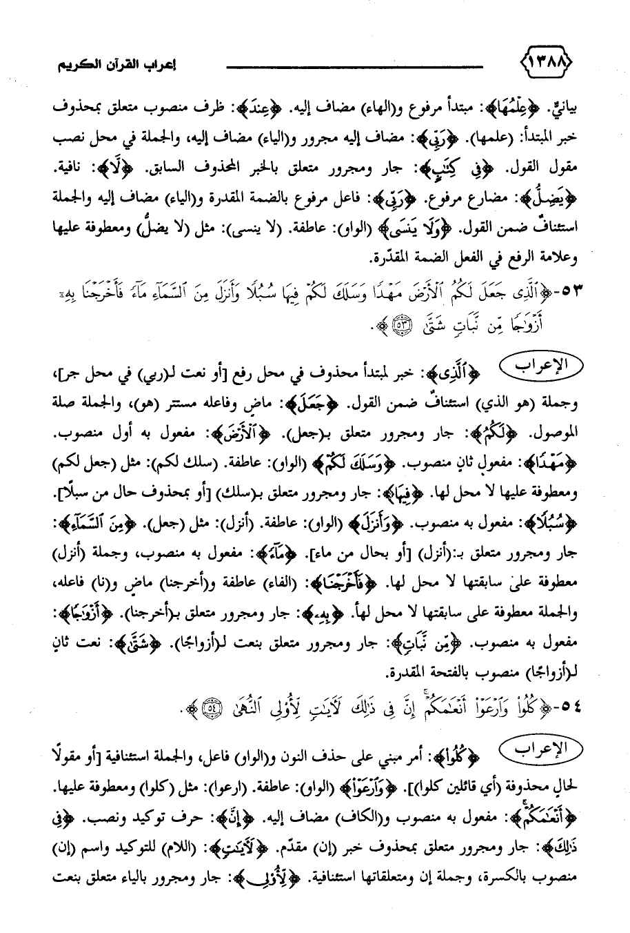الإعراب {كُلُوا}: أمر مبني على حذف النون و (الواو) فاعل، والجملة استئنافية [أو مقولا لحال محذوفة (أي قائلين كلوا)]. {وَارْعَوْا} (الواو): عاطفة. (ارعوا): مثل (كلوا) ومعطوفة عليها.