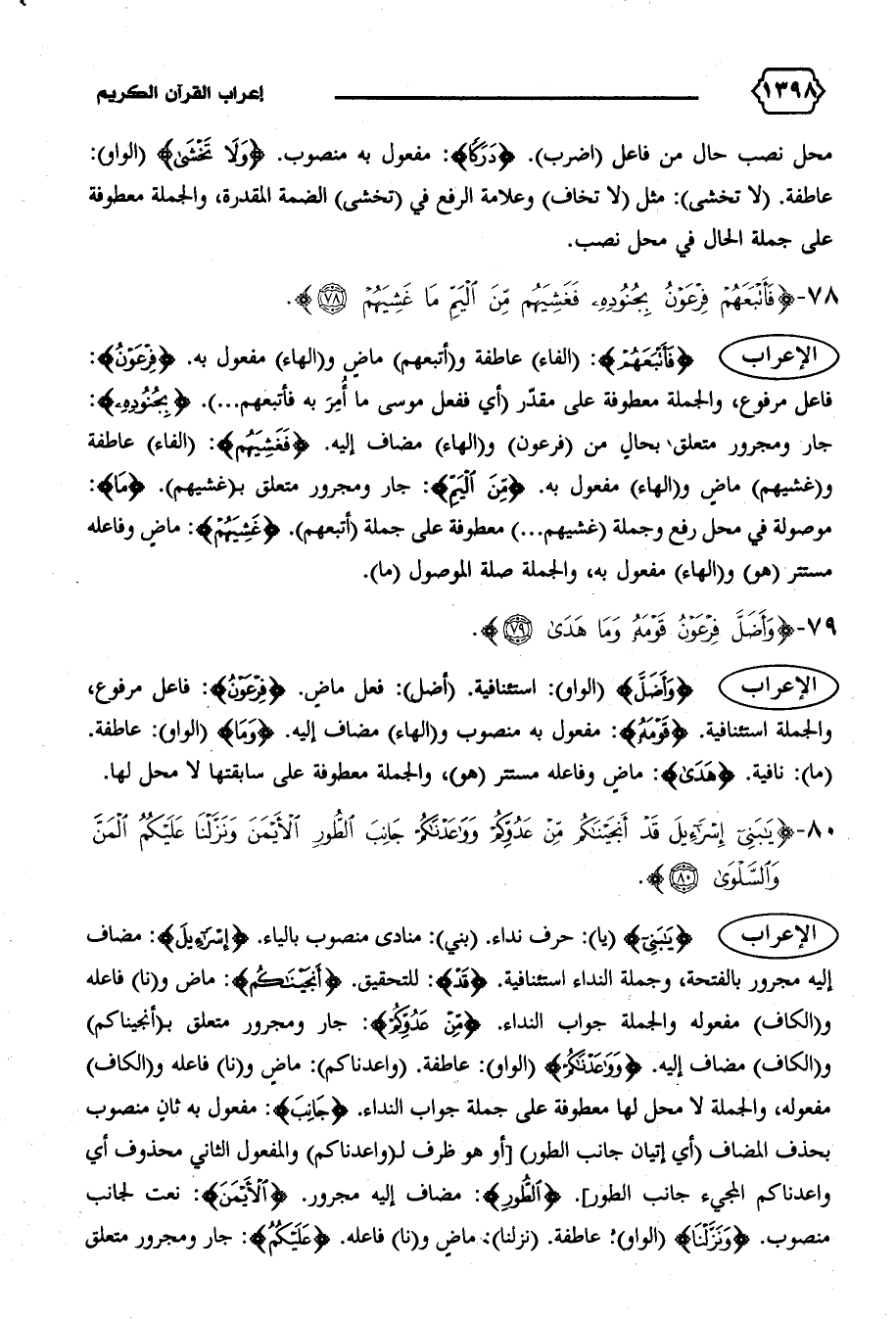الإعراب {يا بَنِي} (يا): حرف نداء. (بني): منادى منصوب بالياء. {إِسْرائِيلَ}: مضاف إليه مجرور بالفتحة، وجملة النداء استئنافية. {قَدْ}: للتحقيق. {أَنْجَيْناكُمْ}: ماض و (نا) فاعله و (الكاف) مفعوله والجملة جواب النداء. {مِنْ عَدُوِّكُمْ}: جار ومجرور متعلق ب (أنجيناكم) و (الكاف) مضاف إليه. {وَواعَدْناكُمْ} (الواو): عاطفة. (واعدناكم): ماض و (نا) فاعله و (الكاف) مفعوله، والجملة لا محل لها معطوفة على جملة جواب النداء. {جانِبَ}: مفعول به ثان منصوب بحذف المضاف (أي إتيان جانب الطور) [أو هو ظرف ل (واعدناكم) والمفعول الثاني محذوف أي واعدناكم المجيء جانب الطور]. {الطُّورِ}: مضاف إليه مجرور. {الْأَيْمَنَ}: نعت لجانب منصوب. {وَنَزَّلْنا} (الواو): عاطفة. (نزلنا): ماض و (نا) فاعله. {عَلَيْكُمُ}: جار ومجرور متعلق