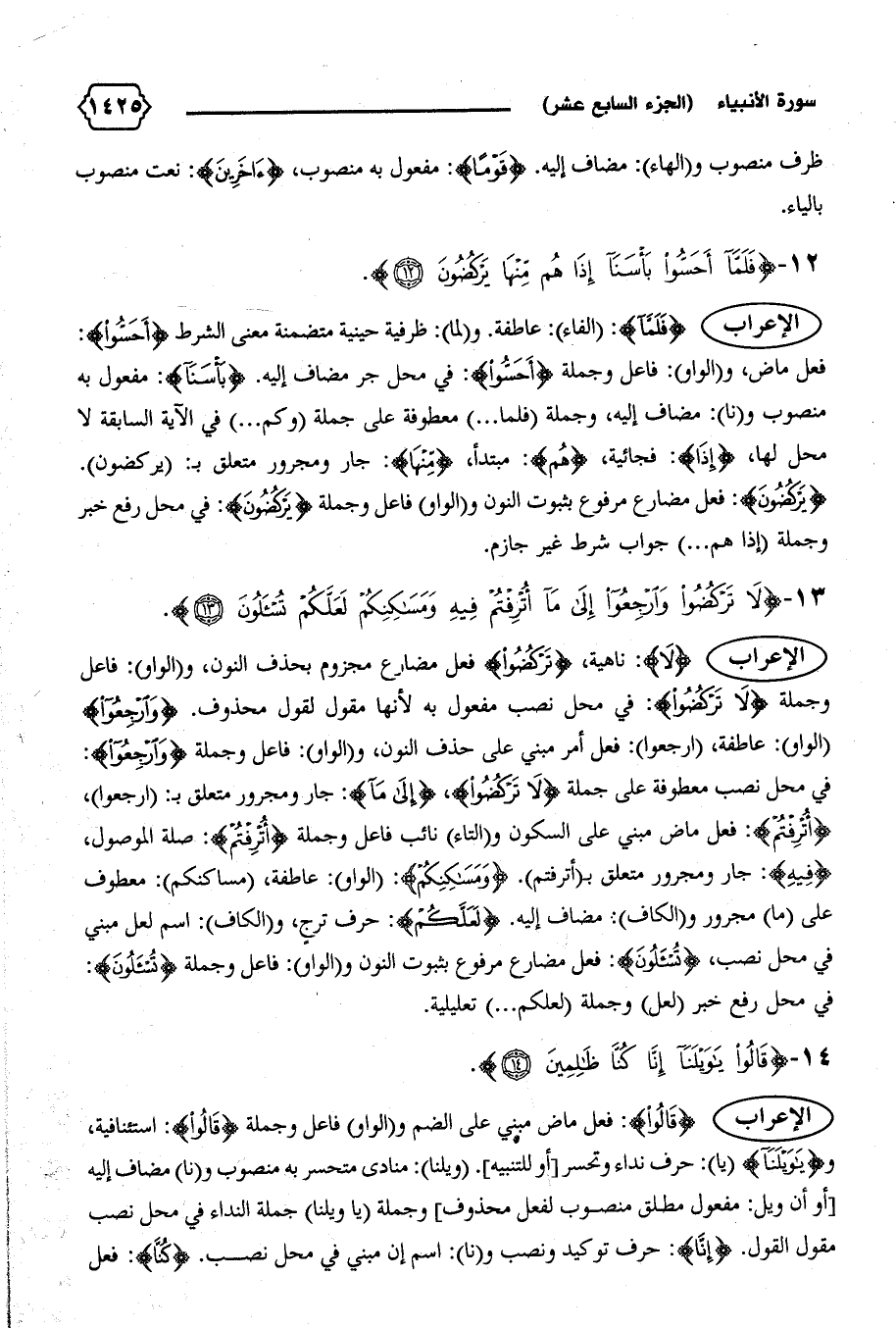 {لا تَرْكُضُوا وَاِرْجِعُوا إِلى ما أُتْرِفْتُمْ فِيهِ وَمَساكِنِكُمْ لَعَلَّكُمْ تُسْئَلُونَ (١٣)}