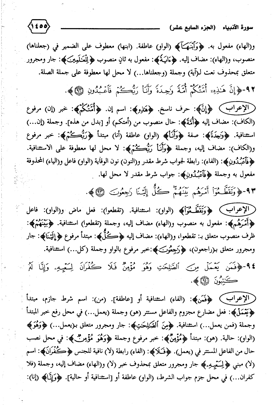الإعراب {إِنَّ}: حرف ناسخ. {هذِهِ}: اسم إن. {أُمَّتُكُمْ}: خبر (إن) مرفوع (الكاف): مضاف إليه {أُمَّةً}: حال منصوب من (أمتكم) أو [بدل من هذه].وجملة (إن ... ) استئنافية. {واحِدَةً}: صفة {وَأَنَا} (الواو) عاطفة (أنا) مبتدأ {رَبُّكُمْ}: خبر مرفوع و (الكاف): مضاف إليه، وجملة {وَأَنَا رَبُّكُمْ}: لا محل لها معطوفة على الاستئنافية.