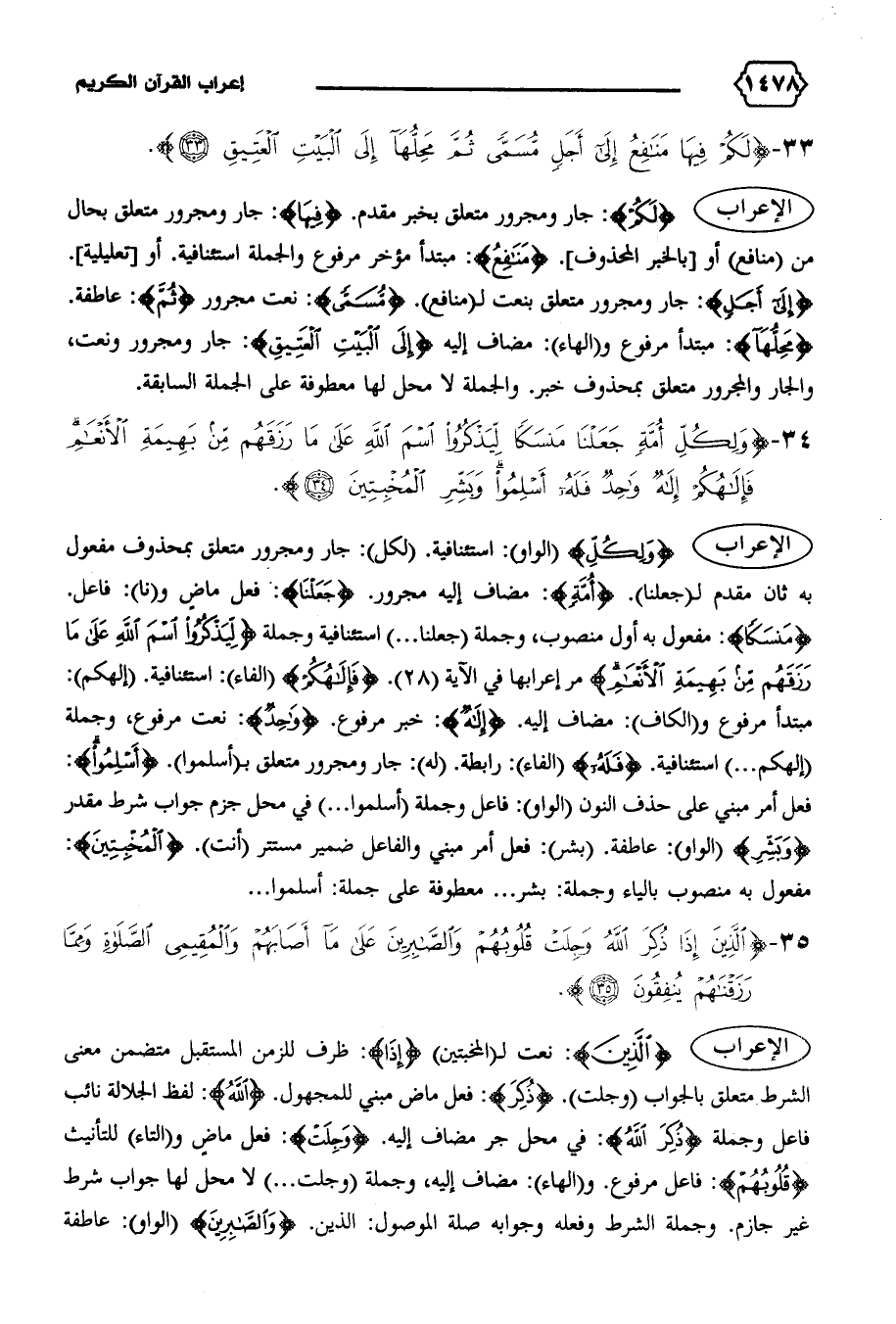 الإعراب {وَلِكُلِّ} (الواو): استئنافية. (لكل): جار ومجرور متعلق بمحذوف مفعول به ثان مقدم ل (جعلنا). {أُمَّةٍ}: مضاف إليه مجرور. {جَعَلْنا}: فعل ماض و (نا): فاعل.