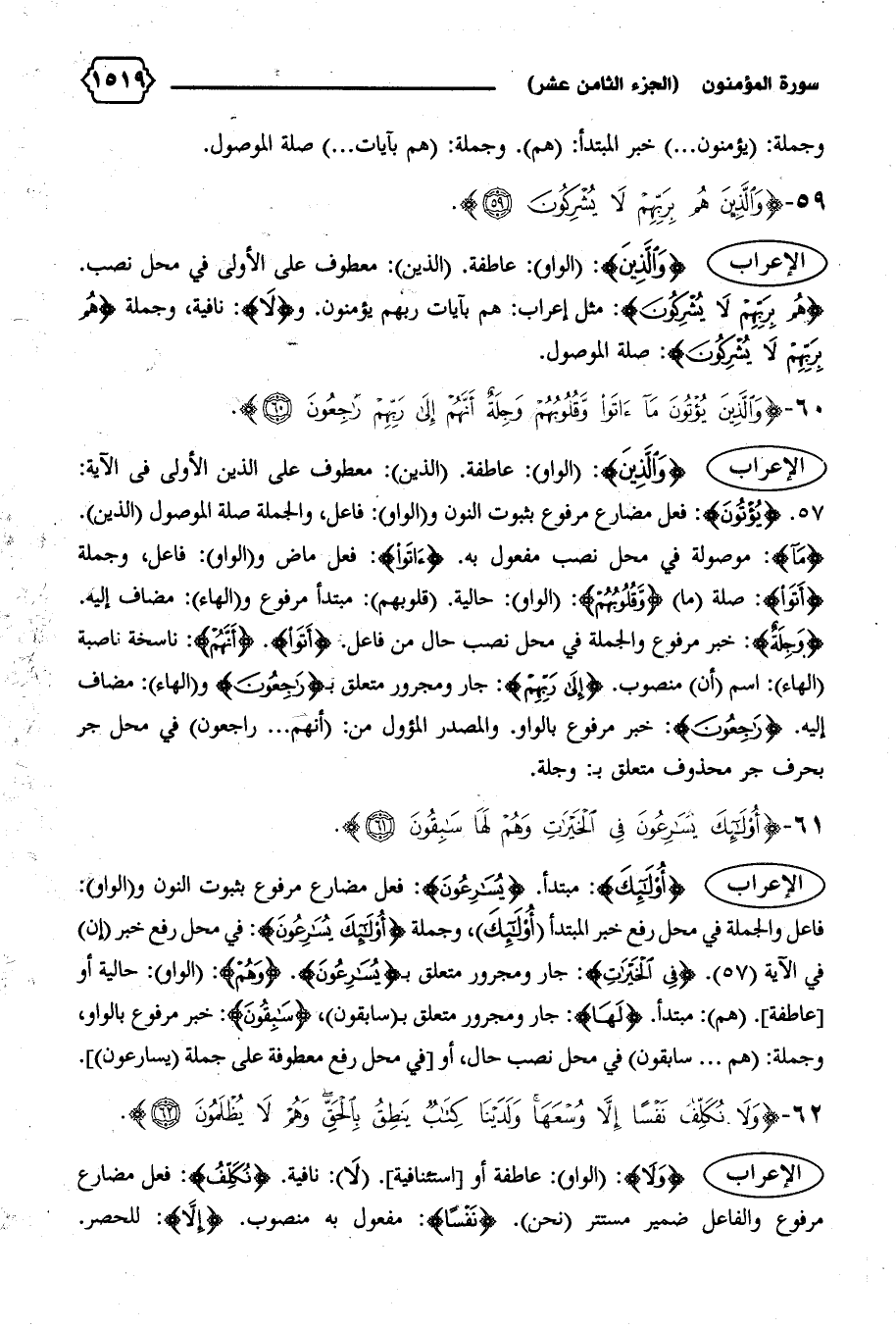 ٥٧. {يُؤْتُونَ}: فعل مضارع مرفوع بثبوت النون و (الواو): فاعل، والجملة صلة الموصول (الذين).