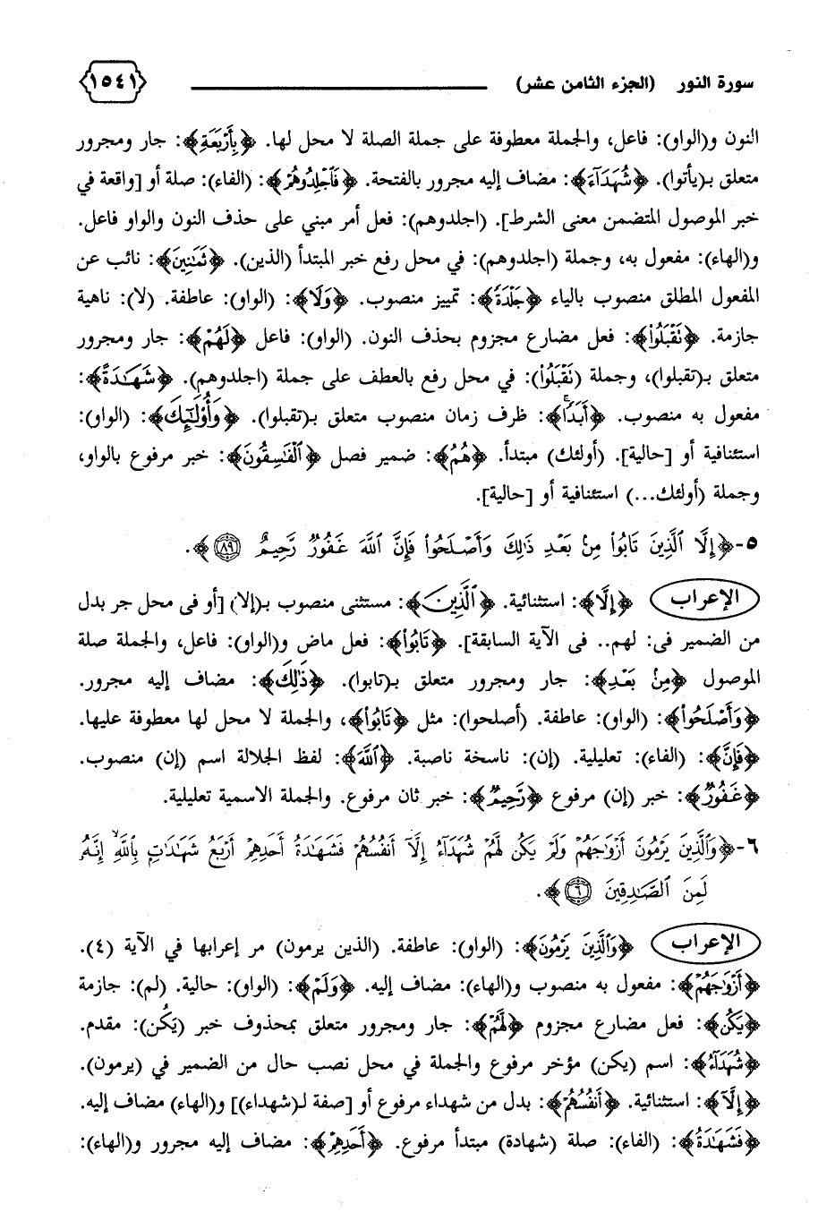 الإعراب {وَالَّذِينَ يَرْمُونَ}: (الواو): عاطفة. (الذين يرمون) مر إعرابها في الآية (٤).