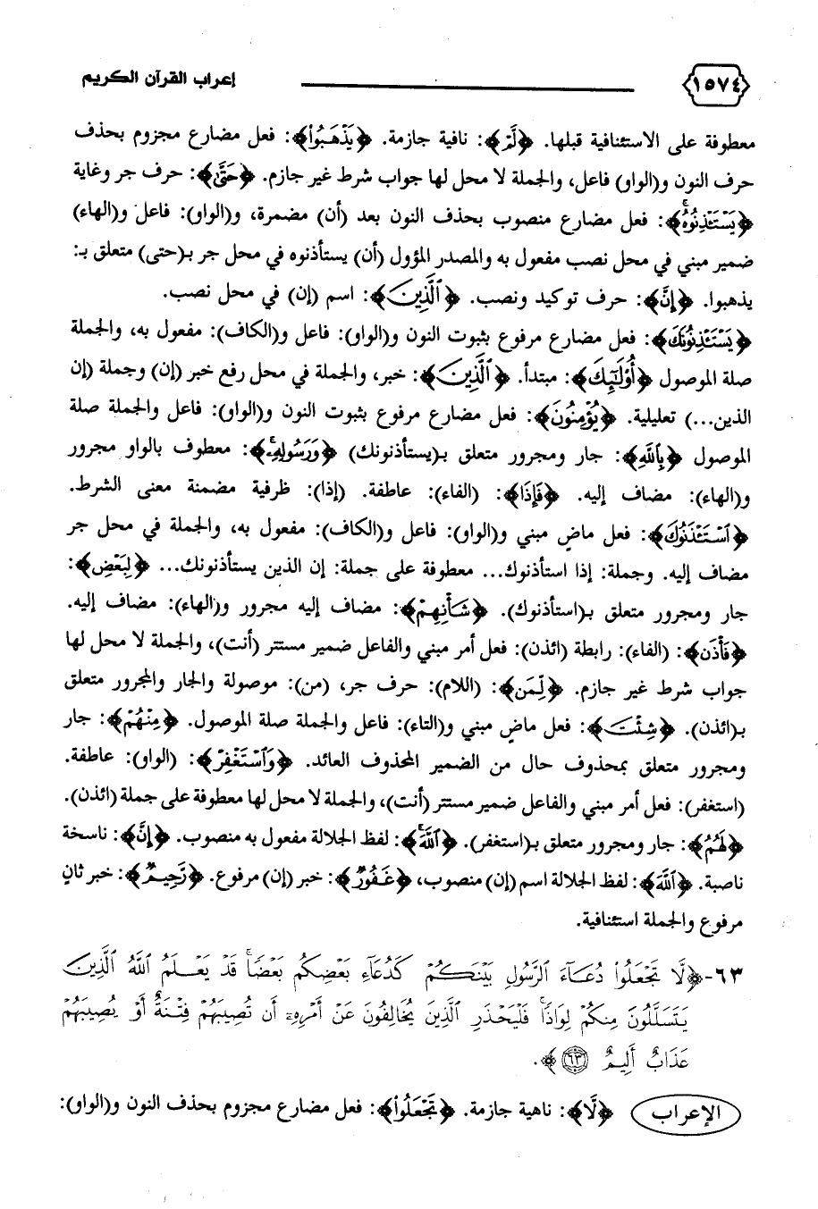 معطوفة على الاستئنافية قبلها. {لَمْ}: نافية جازمة. {يَذْهَبُوا}: فعل مضارع مجزوم بحذف حرف النون و (الواو) فاعل، والجملة لا محل لها جواب شرط غير جازم. {حَتّى}: حرف جر وغاية {يَسْتَأْذِنُوهُ}: فعل مضارع منصوب بحذف النون بعد (أن) مضمرة، و (الواو): فاعل و (الهاء) ضمير مبني في محل نصب مفعول به والمصدر المؤول (أن) يستأذنوه في محل جر ب (حتى) متعلق ب: