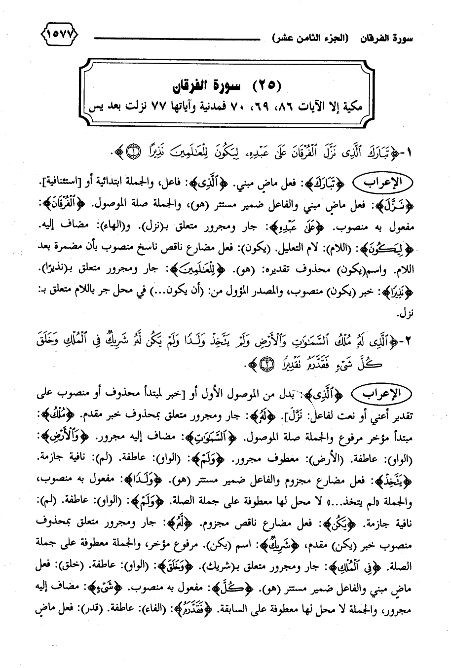 الإعراب {تَبارَكَ}: فعل ماض مبني. {الَّذِي}: فاعل، والجملة ابتدائية أو [استئنافية].