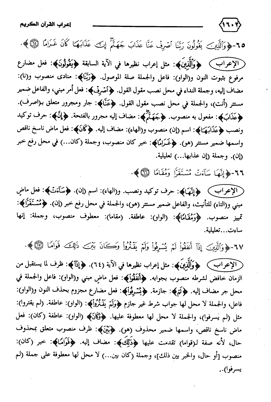 {وَالَّذِينَ يَقُولُونَ رَبَّنَا اِصْرِفْ عَنّا عَذابَ جَهَنَّمَ إِنَّ عَذابَها كانَ غَراماً (٦٥)}