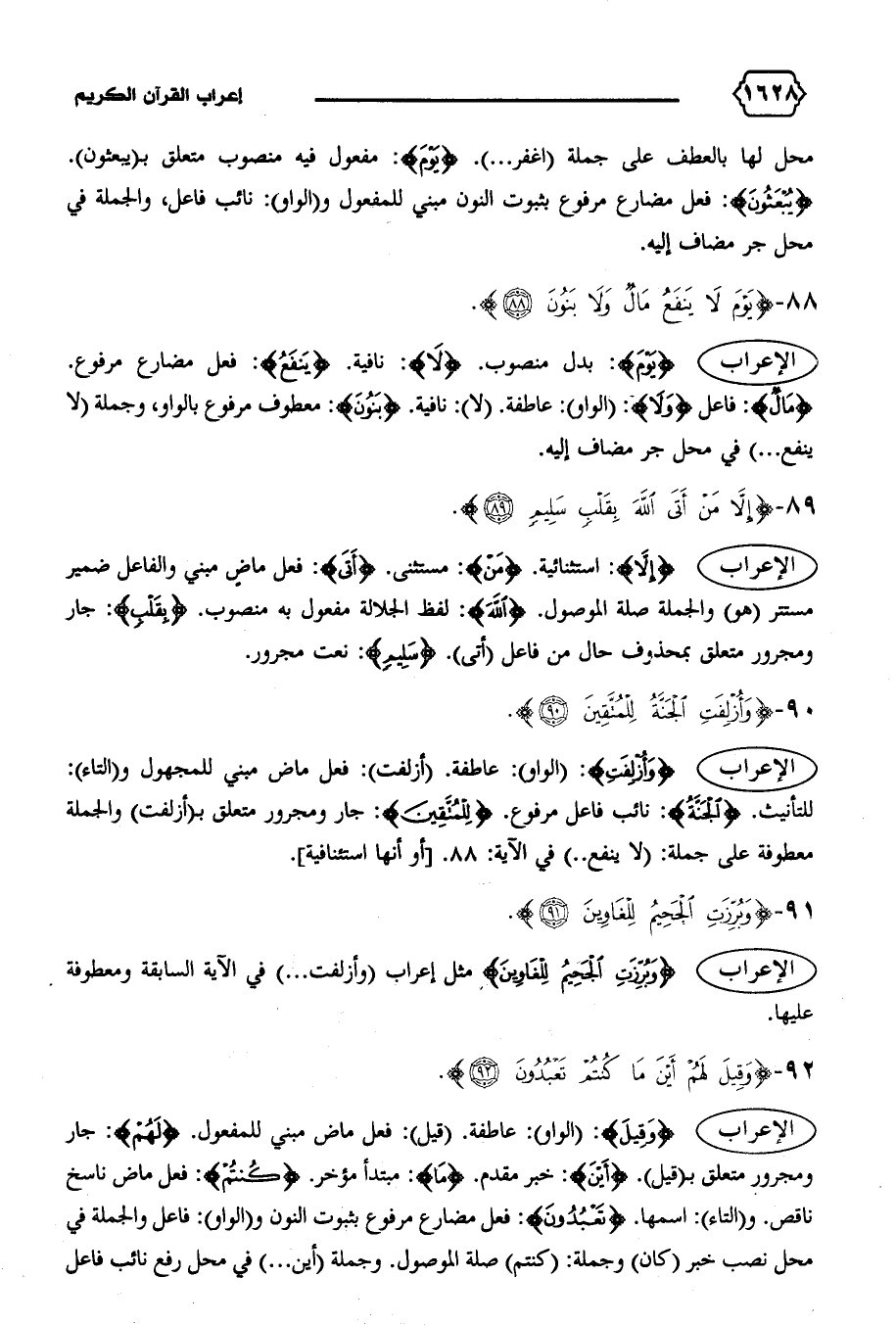 الإعراب {إِلاّ}: استثنائية. {مَنْ}: مستثنى. {أَتَى}: فعل ماض مبني والفاعل ضمير مستتر (هو) والجملة صلة الموصول. {اللهَ}: لفظ الجلالة مفعول به منصوب. {بِقَلْبٍ}: جار ومجرور متعلق بمحذوف حال من فاعل (أتى). {سَلِيمٍ}: نعت مجرور.