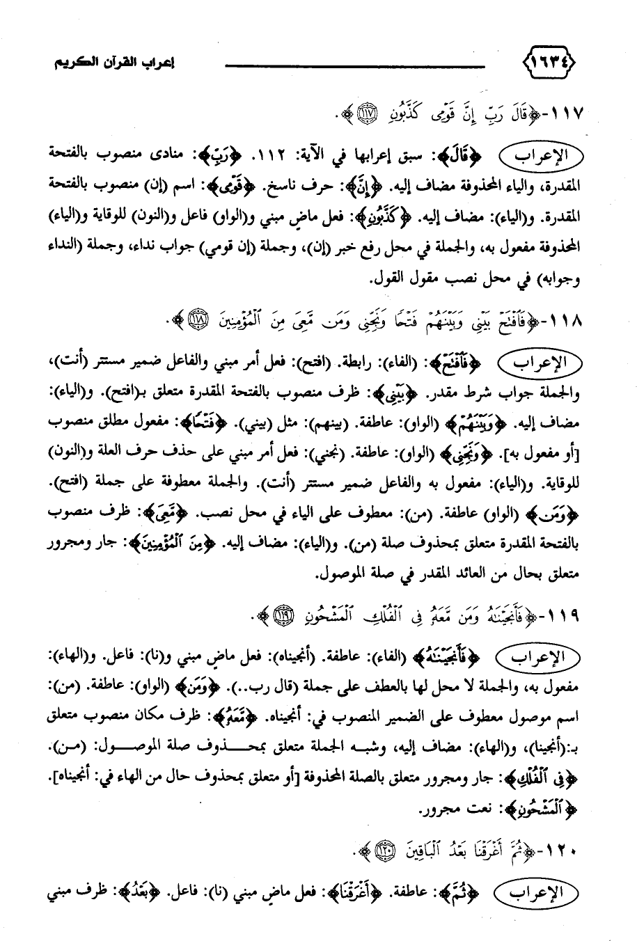 الإعراب {قالَ}: سبق إعرابها في الآية: ١١٢. {رَبِّ}: منادى منصوب بالفتحة المقدرة، والياء المحذوفة مضاف إليه. {إِنَّ}: حرف ناسخ. {قَوْمِي}: اسم (إن) منصوب بالفتحة المقدرة. و (الياء): مضاف إليه. {كَذَّبُونِ}: فعل ماض مبني و (الواو) فاعل و (النون) للوقاية و (الياء) المحذوفة مفعول به، والجملة في محل رفع خبر (إن)، وجملة (إن قومي) جواب نداء، وجملة (النداء وجوابه) في محل نصب مقول القول.