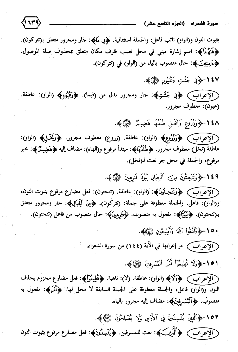 الإعراب {وَلا} (الواو): عاطفة. (لا): ناهية. {تُطِيعُوا}: فعل مضارع مجزوم بحذف النون و (الواو) فاعل، والجملة معطوفة على الجملة السابقة لا محل لها. {أَمْرَ}: مفعول به منصوب. {الْمُسْرِفِينَ}: مضاف إليه مجرور بالياء.
